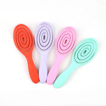 Etiqueta privada Muti Color Mango de goma Cojín de plástico Desenredante fuerte Cepillo de pelo de paleta desenredante húmedo