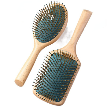 カスタマイズされたロゴ環境にやさしい長方形楕円形パドルマッサージスカルプナチュラルブナ木製コームマッサージパドルもつれ解消ヘアブラシ