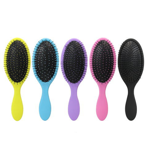 Özel etiket Muti renk kauçuk kolu plastik yastık güçlü Detangling ıslak Detangler kürek saç fırçası
