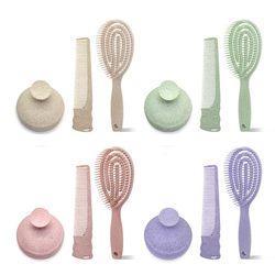 Biyobozunur buğday samanı Detangler baş masaj aleti şampuan fırçası geniş diş tarak Combo islak kuru saç fırçası